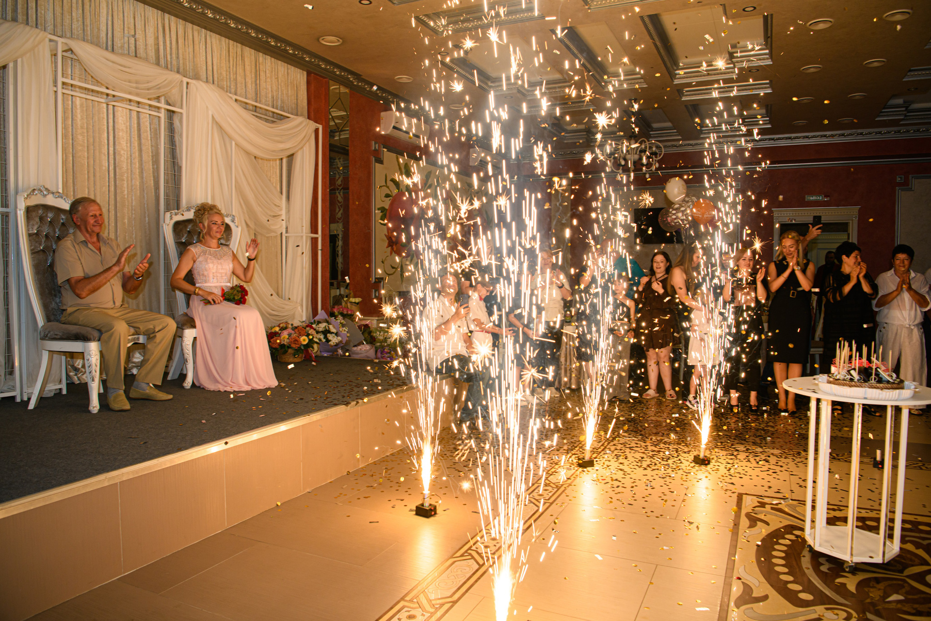 С одного часа порядка 150-200 фотографий. Для примера с 5-ти часовой съемки двойного юбилея заказчики получили 1000 фотографий.